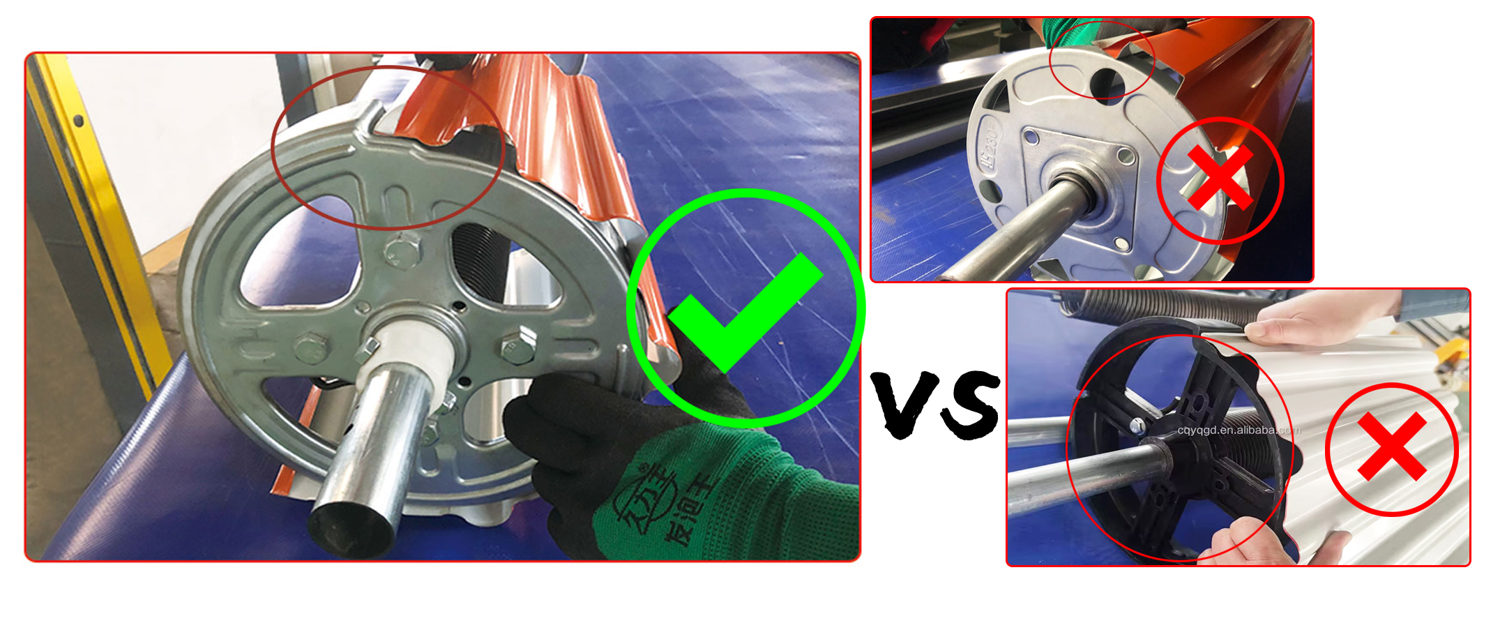 Der Vorhang wird an der Trommel befestigt. Nachdem der Vorhang auf der Trommel befestigt ist, kann er eine perfekte Runde bilden und der Türvorhang sanft auf und ab rollen